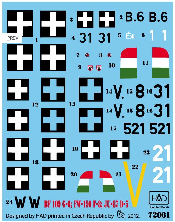 HAD - 1/48 Decal Me Bf 109 G-6, Ju-87 D-5, Fw-190 F-8