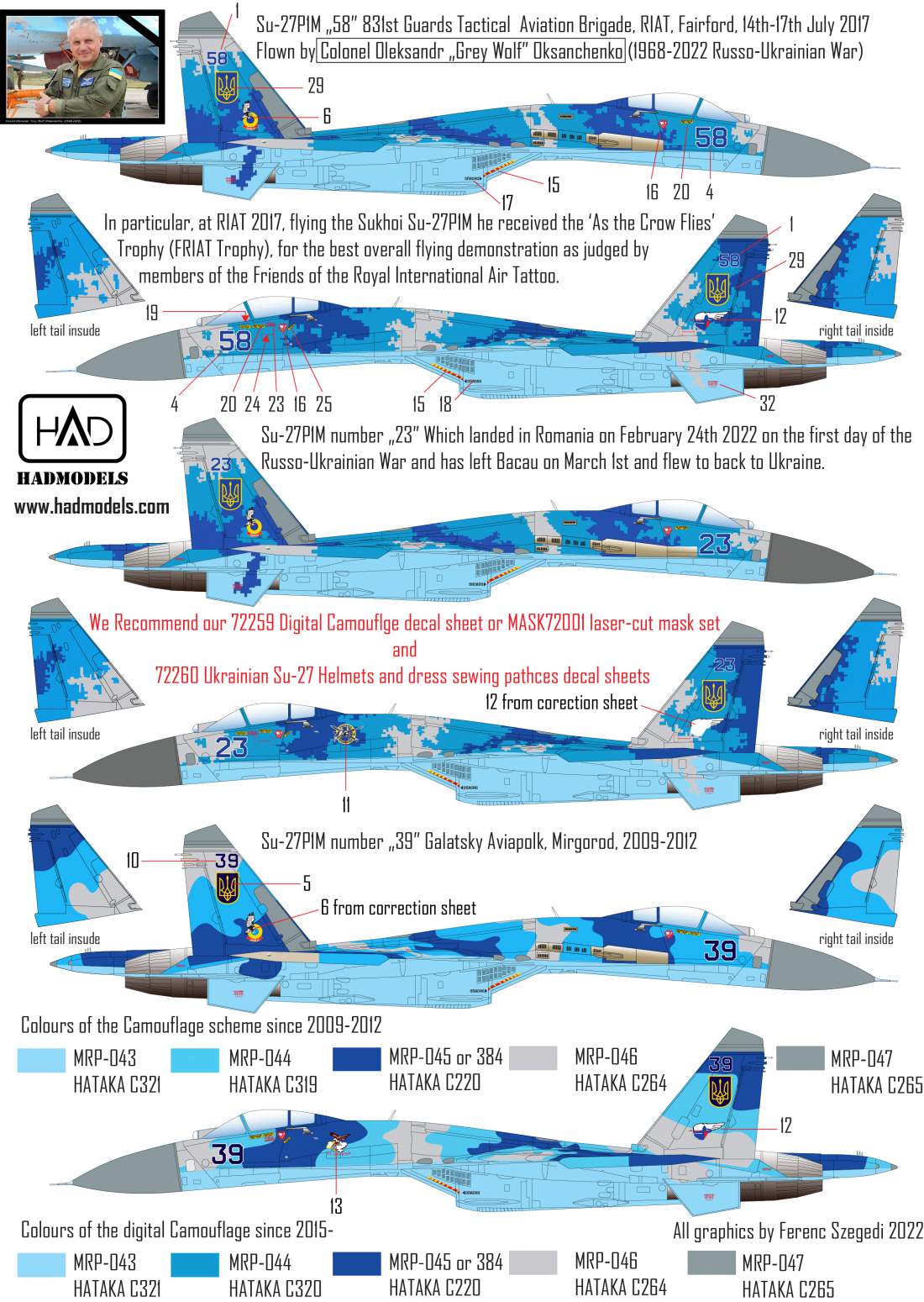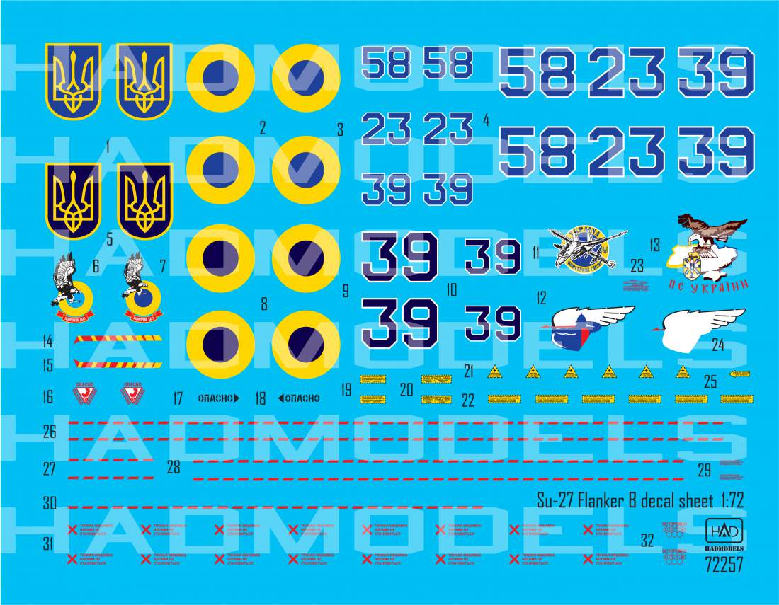 HAD - 1/72 Ukrainian Sukhoi Su-27P1M Flanker B Digital Camouflage version markings only (No digital camouflage decals included)