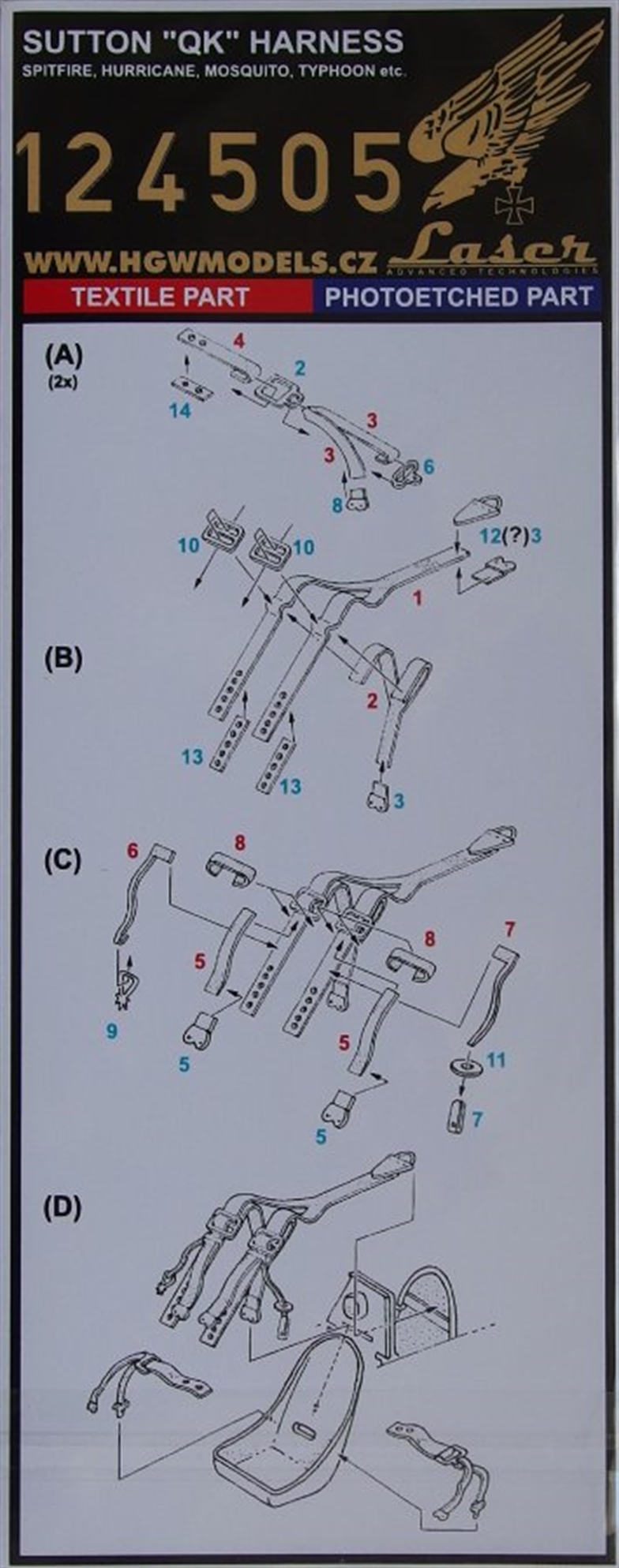 HGW - 1/24 Sutton ",QK", Harness (RAF Early) - Seatbelts (designed to be used with Airfix kits) [Supermarine Spitfire Mk.IA Mk.Vb Hawker Hurricane Mk.I Hawker Typhoon Mk.IB de Havilland Mosquito NF.II]