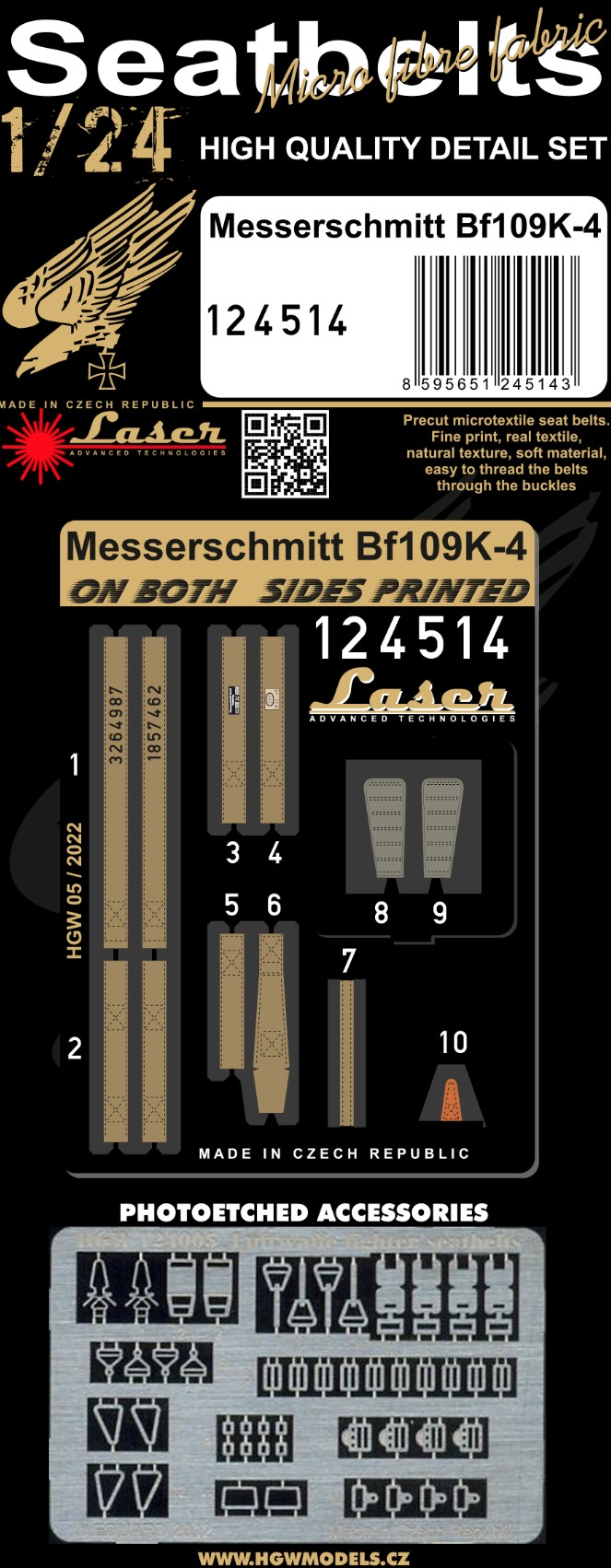 HGW - 1/24 Seatbelts Messerschmitt Bf 109K-4 (laser)