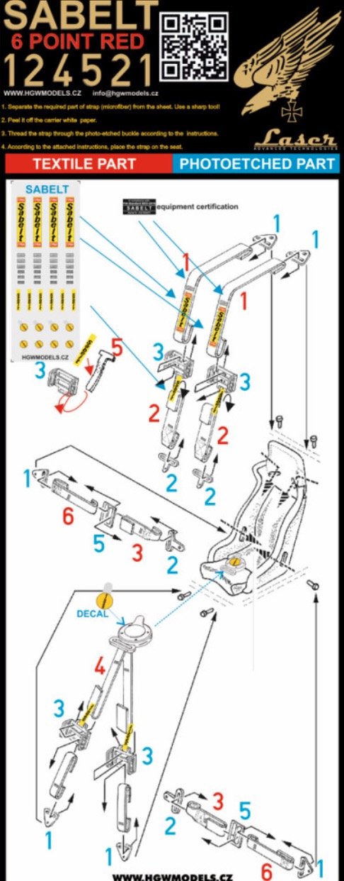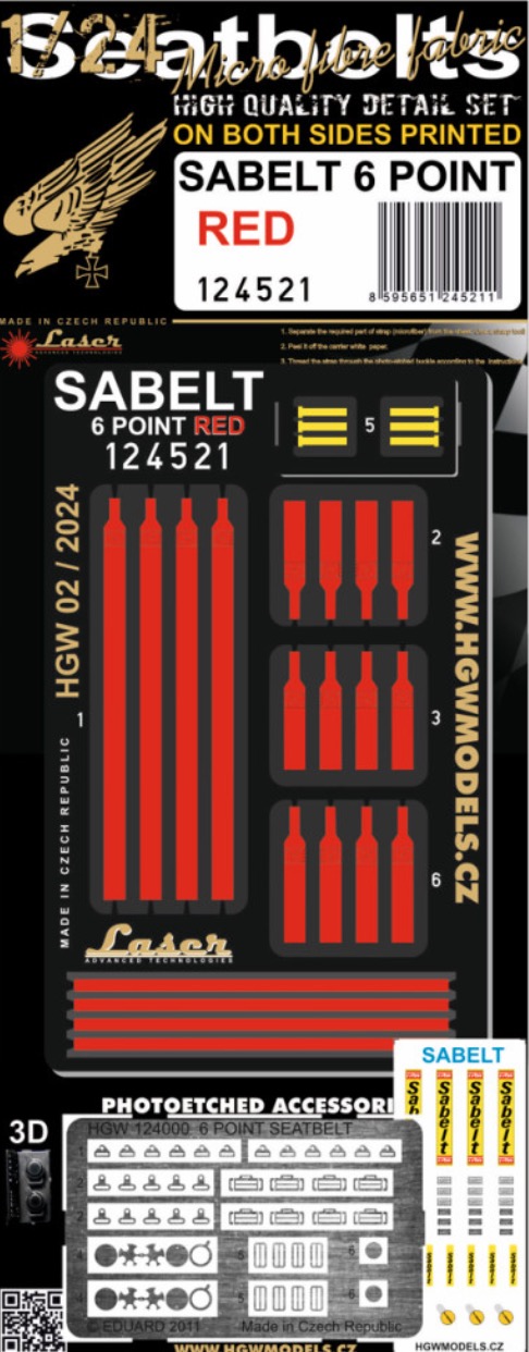 HGW - 1/24 Sabelt 6 Point Red Seatbelts