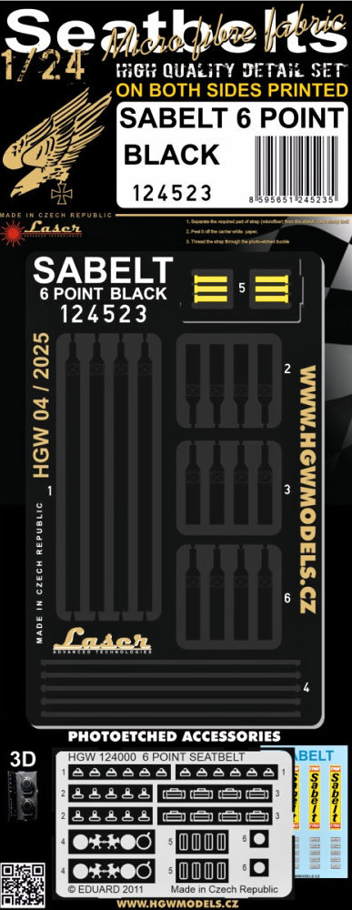 HGW - 1/24 Seatbelts Sabelt 6 point BLACK laser