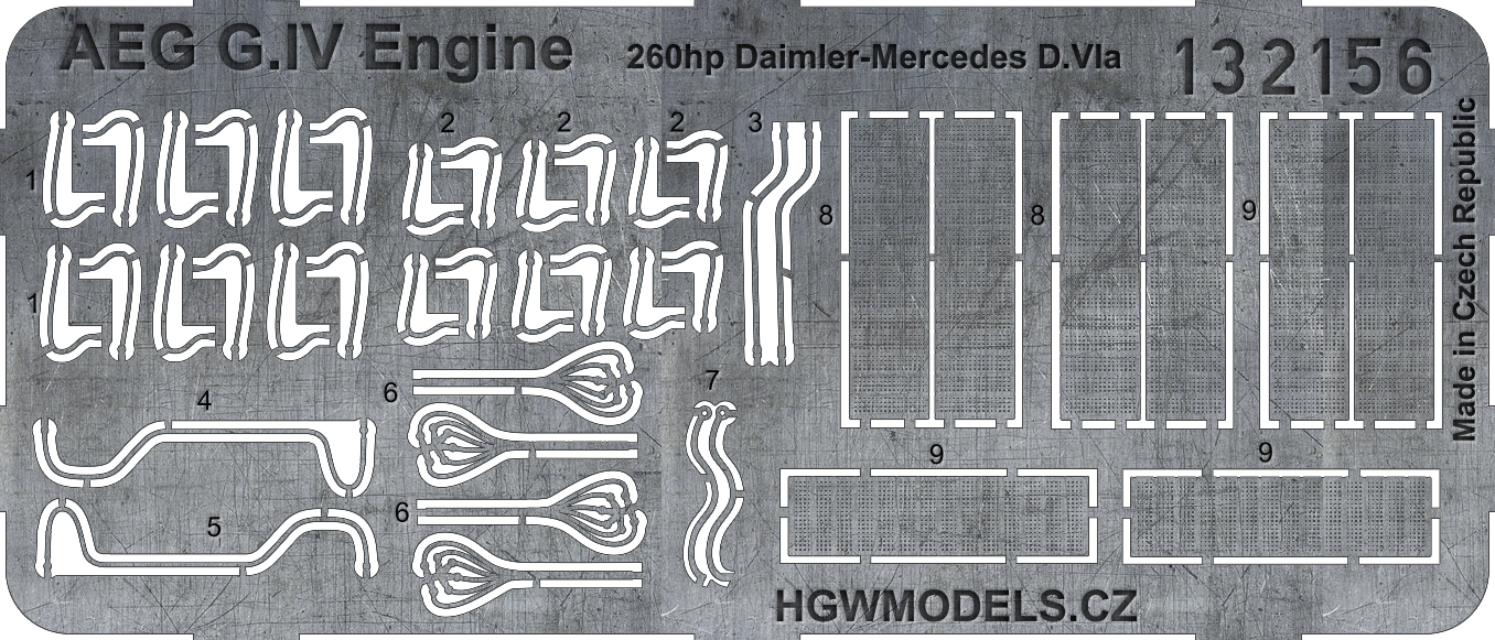 HGW - 1/32 AEG G.IV - 260 hp Daimler-Mercedes D.Via Engine - PE Sets (for Wingnut Wings kits)