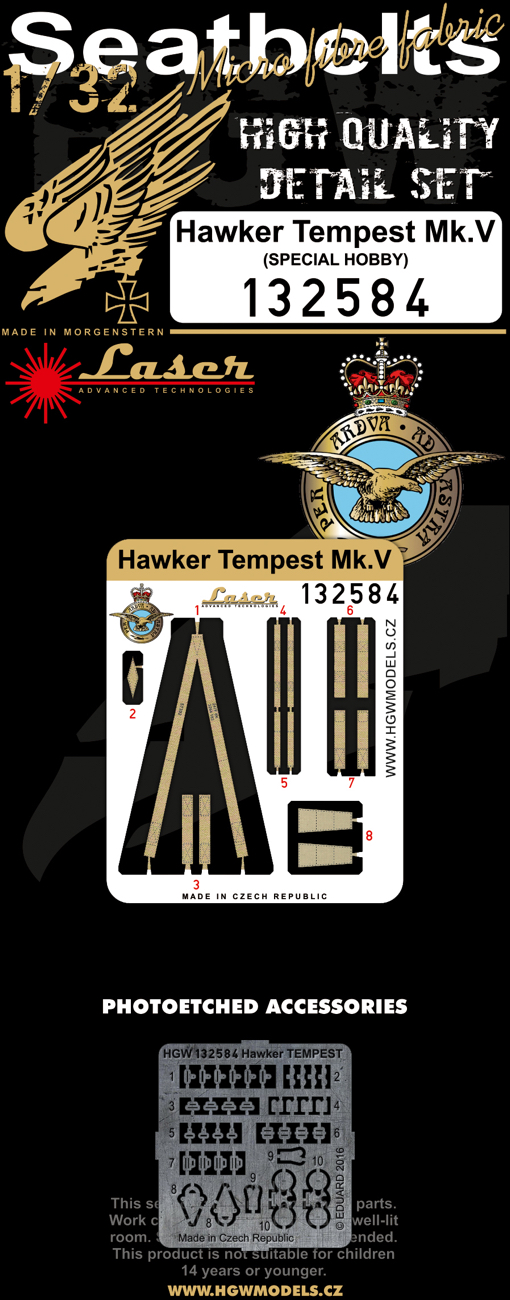 HGW - 1/32 Hawker Tempest Mk.V Seat belts pre-cut (laser) (for Special Hobby kits)