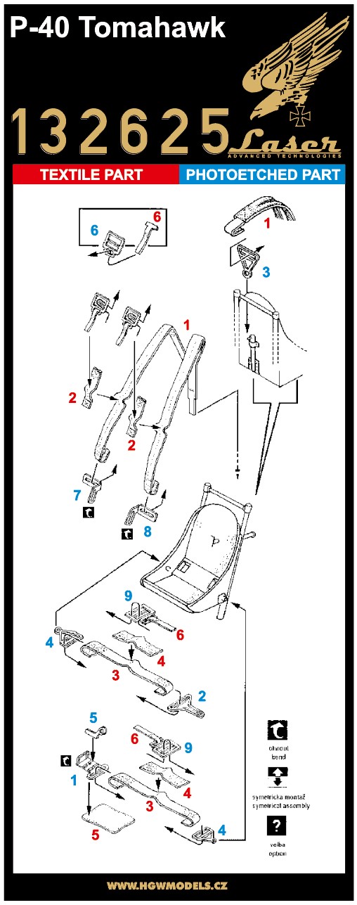 HGW - 1/32 Curtiss P-40 Tomahawk pre-cut (laser) Seatbelts