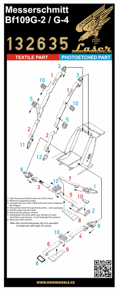 HGW - 1/32 Messerschmitt Bf-109G-2/4 pre-cut (laser) Seatbelts (for Revell kits)