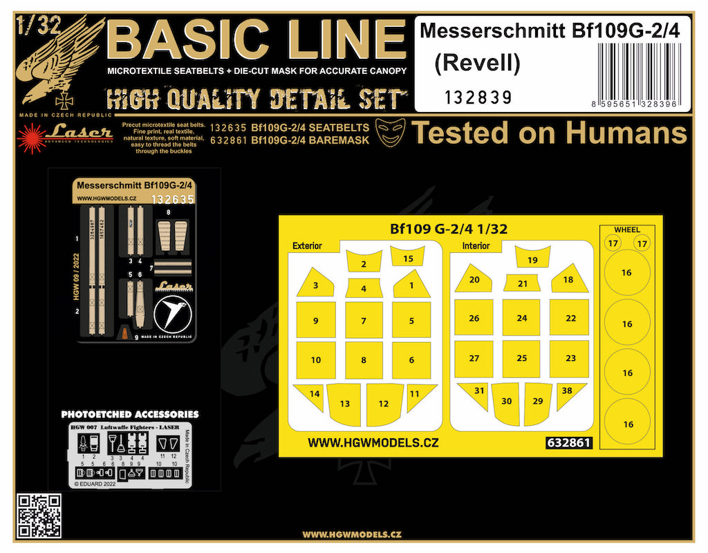 HGW - 1/48 Messerschmitt Bf-109G-2/4 Basic LINE: seatbelts + masks (for Revell kits)