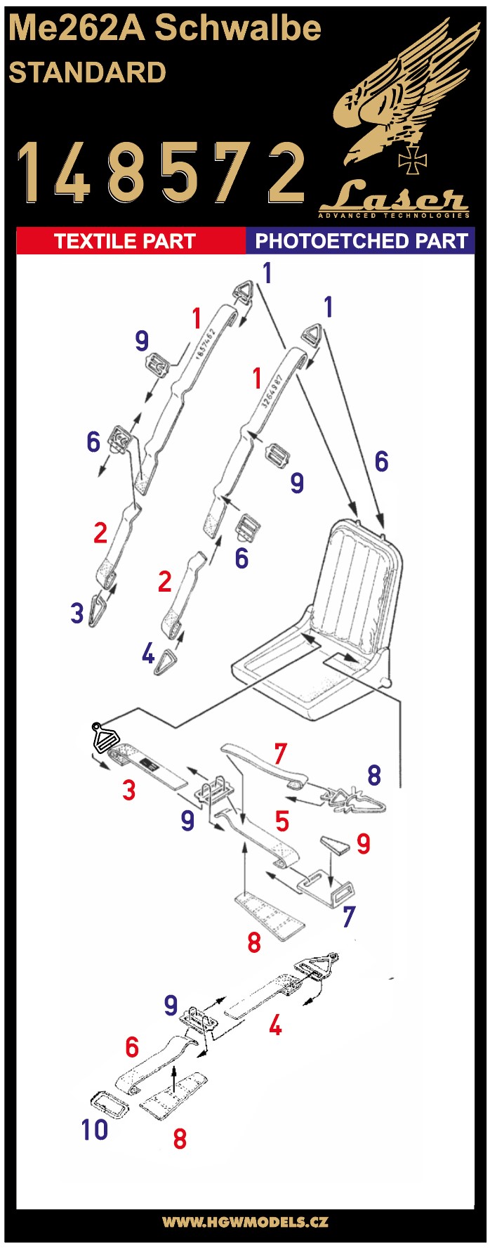 HGW - 1/48 Seatbelts Me 262A Schwalbe Standard (laser)