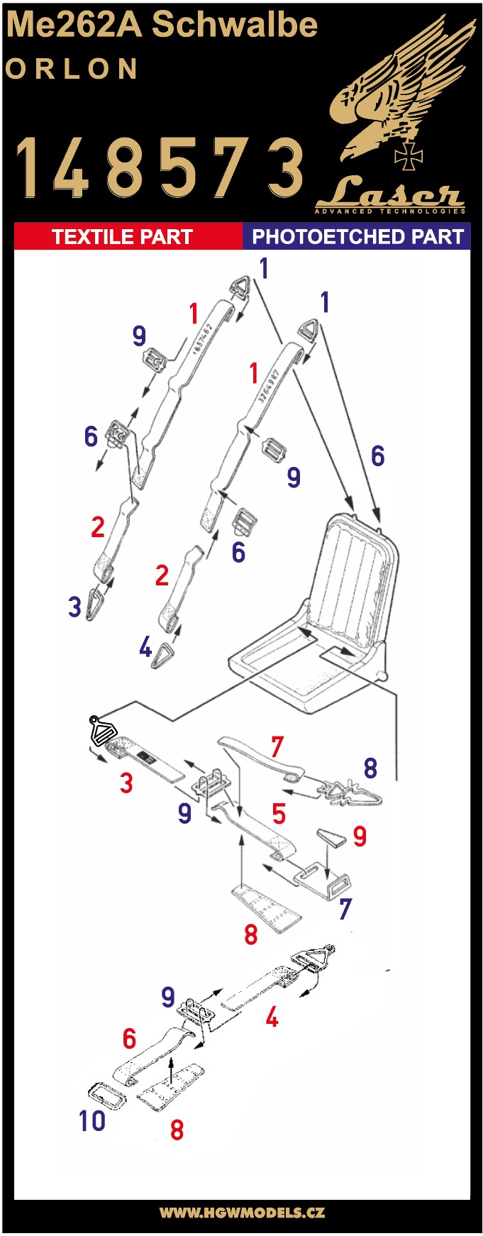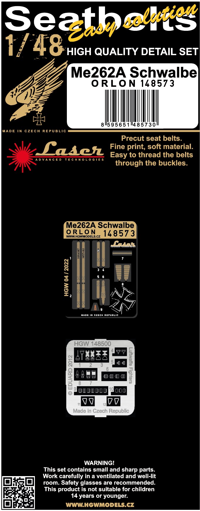 HGW - 1/48 Messerschmitt Me-262A Schwalbe (Orlon) pre-cut (laser) eatbelts