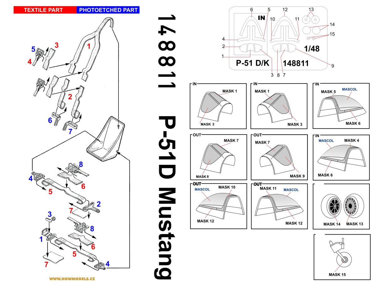 HGW - 1/48 North-American P-51D Mustang BASIC LINE: seatbelts + masks (for Tamiya kits)