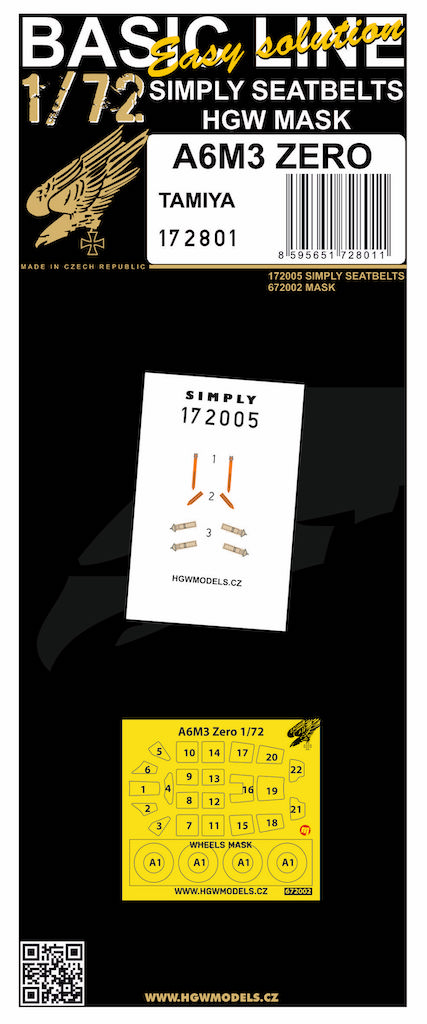 HGW - 1/72 Mitsubishi A6M3 'Zero' Basic LINE: seatbelts + canopy frame paint mask (for Tamiya kits)