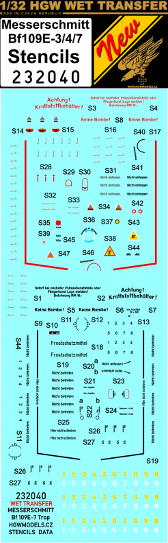 HGW - 1/32 Messerschmitt Bf-109E-3/Bf-109E-4/Bf-109E-7 Stencils