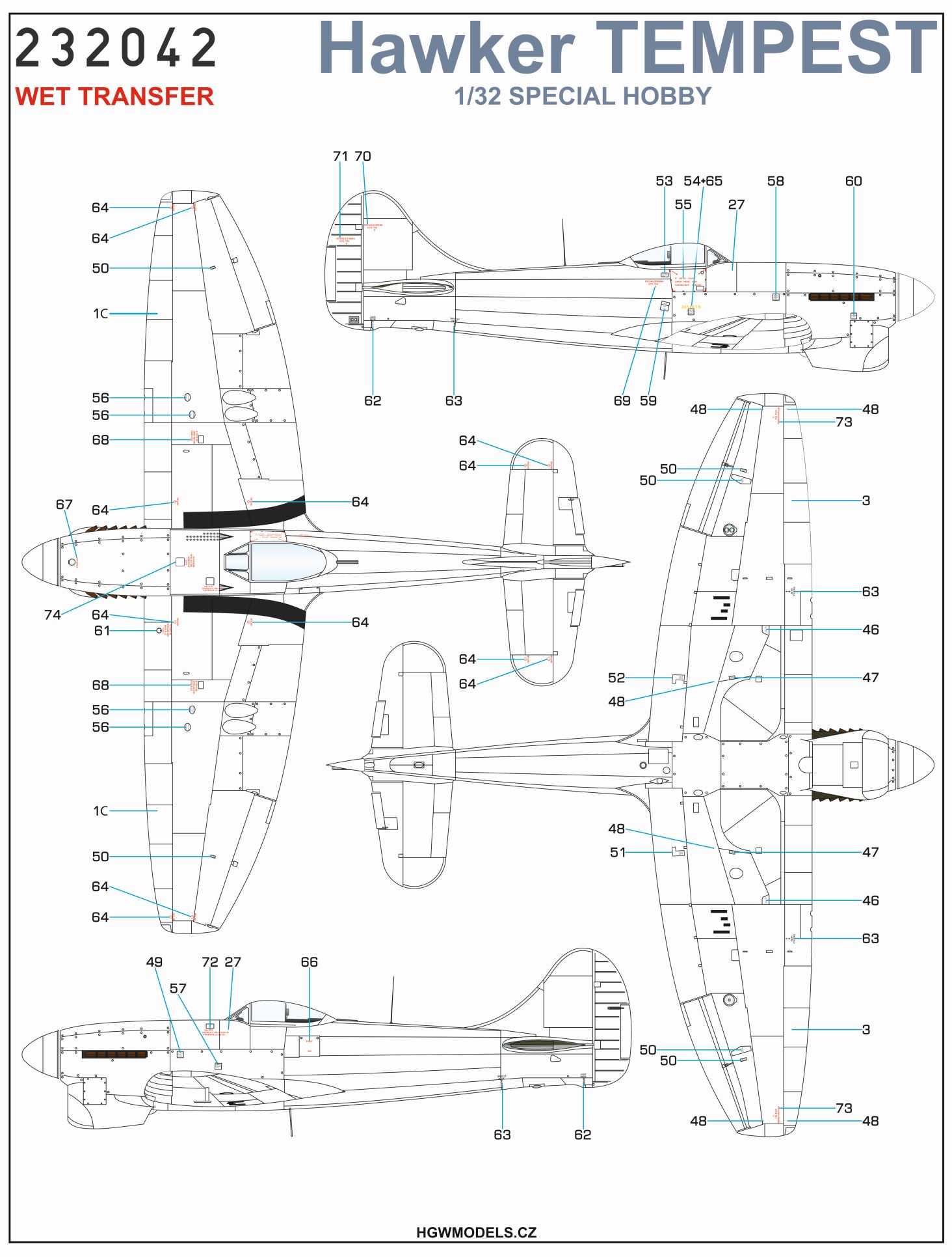 HGW - 1/32 Decals Hawker Tempest Mk.II/Mk.V Stencils