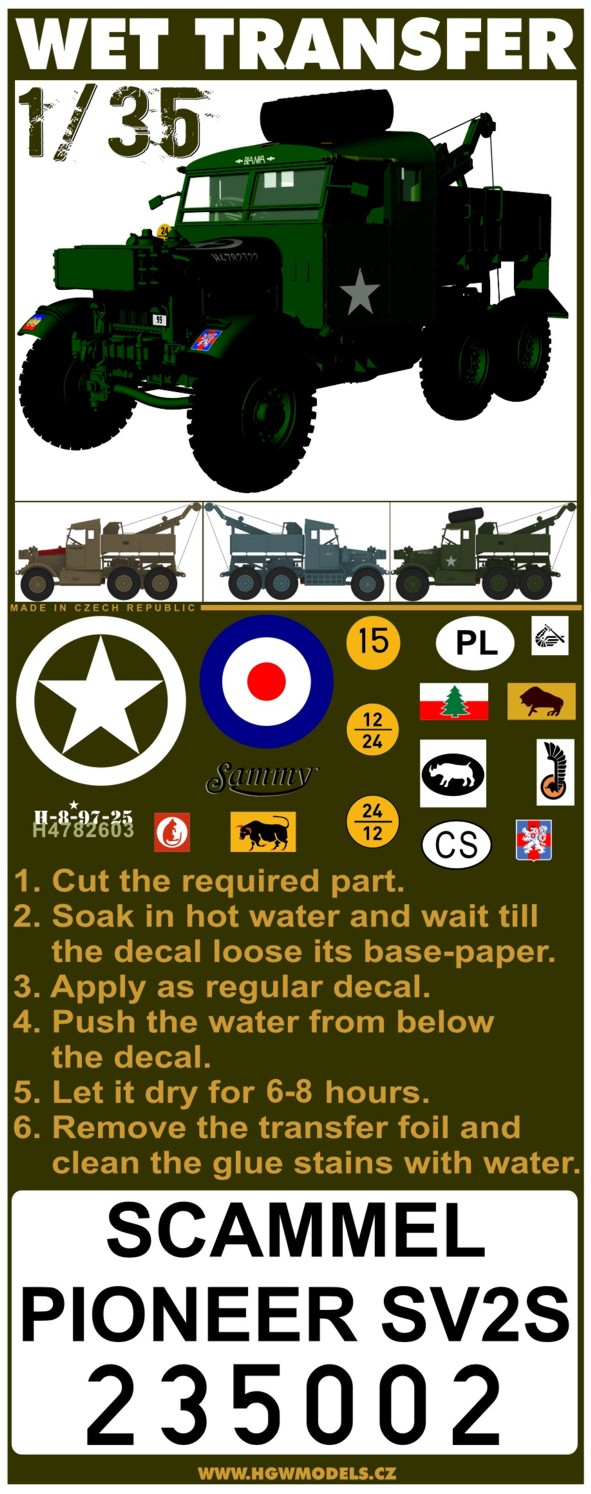 HGW - 1/35 Scammel Pioneer SV2S Stencils (for IBG kits)