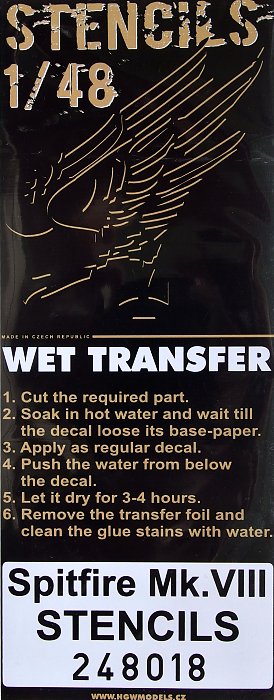 HGW - 1/48 Spitfire Mk.VIII Stencils Eduard Wet Transfers