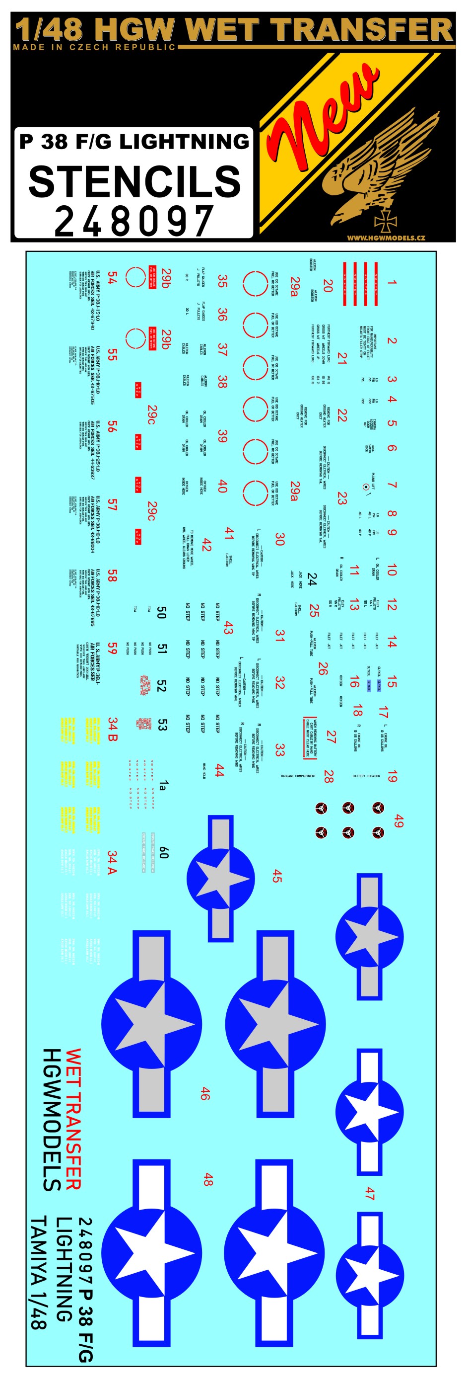 HGW - 1/48 STENCILS P-38 F/G Lightning decal