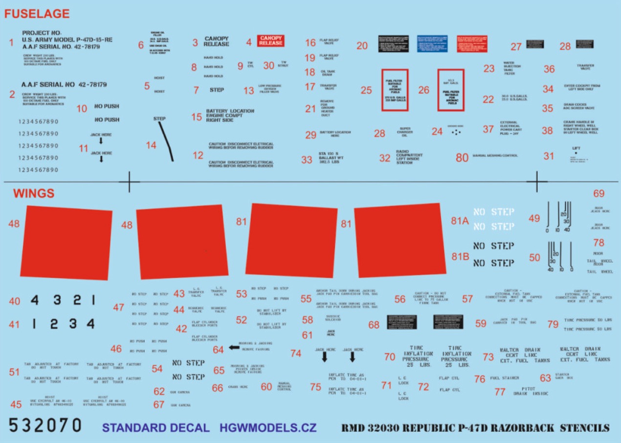 HGW - 1/32 Decals P-47D Razorback STENCILS for Trumpeter