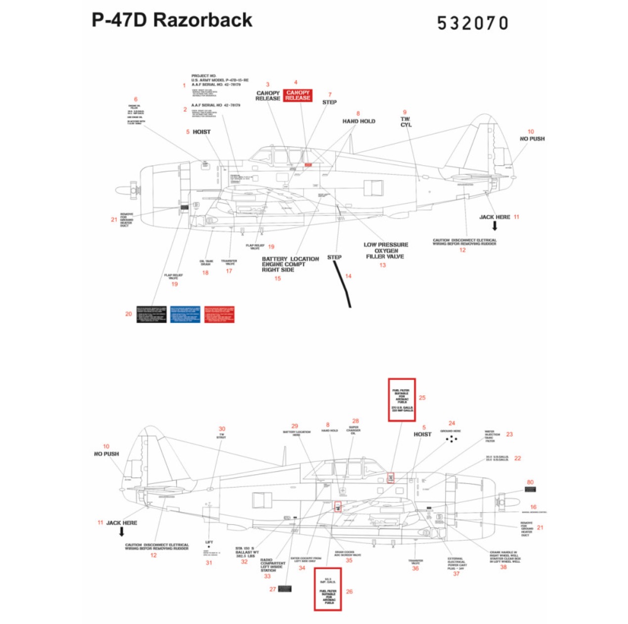 1/32 Decals P-47D Razorback STENCILS for Trumpeter