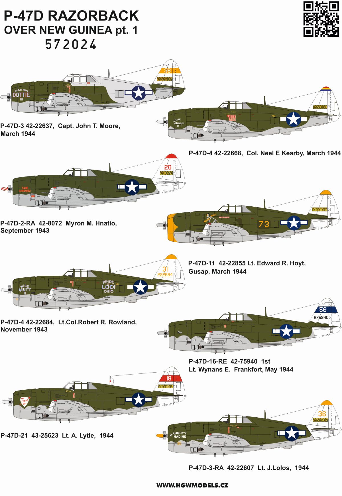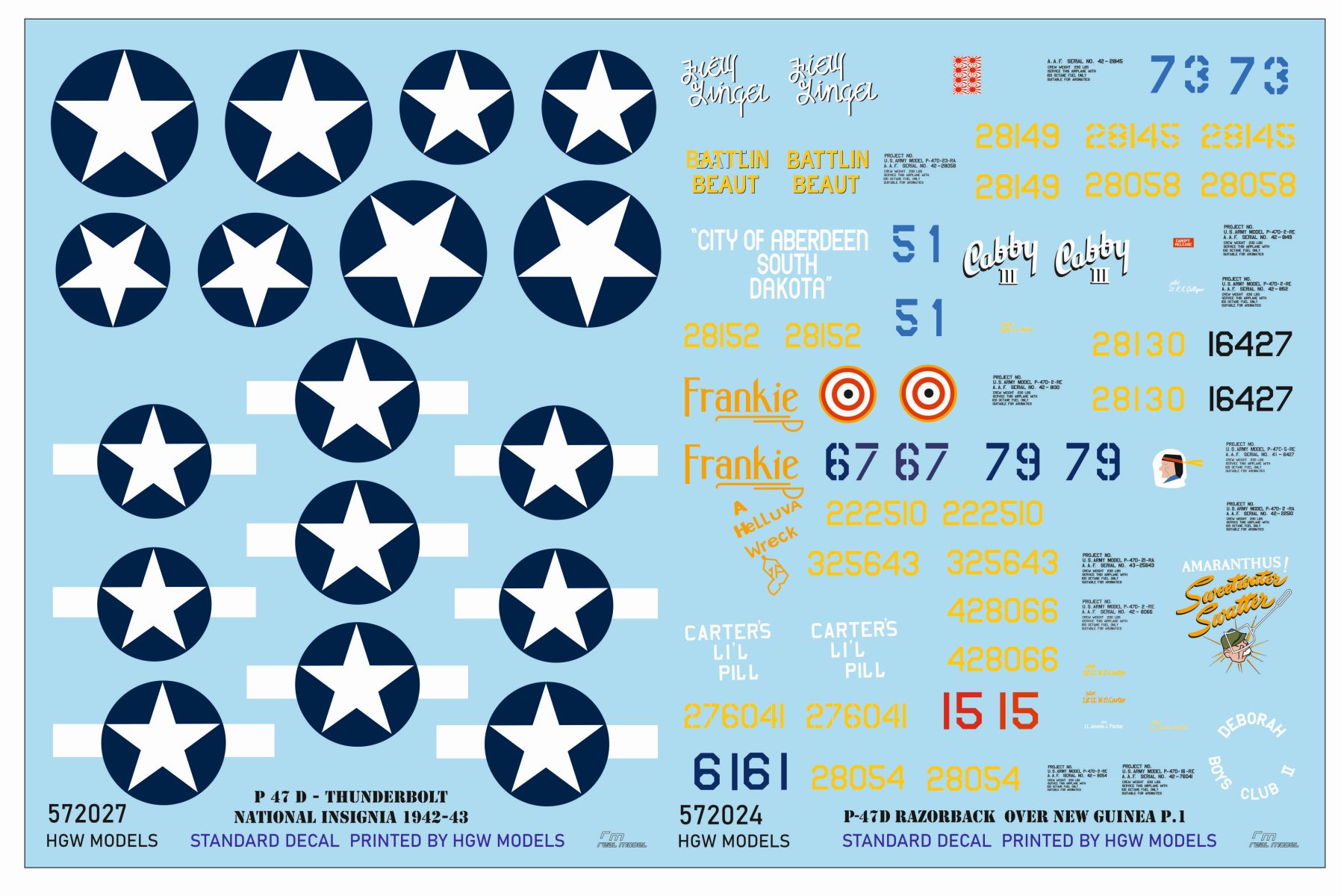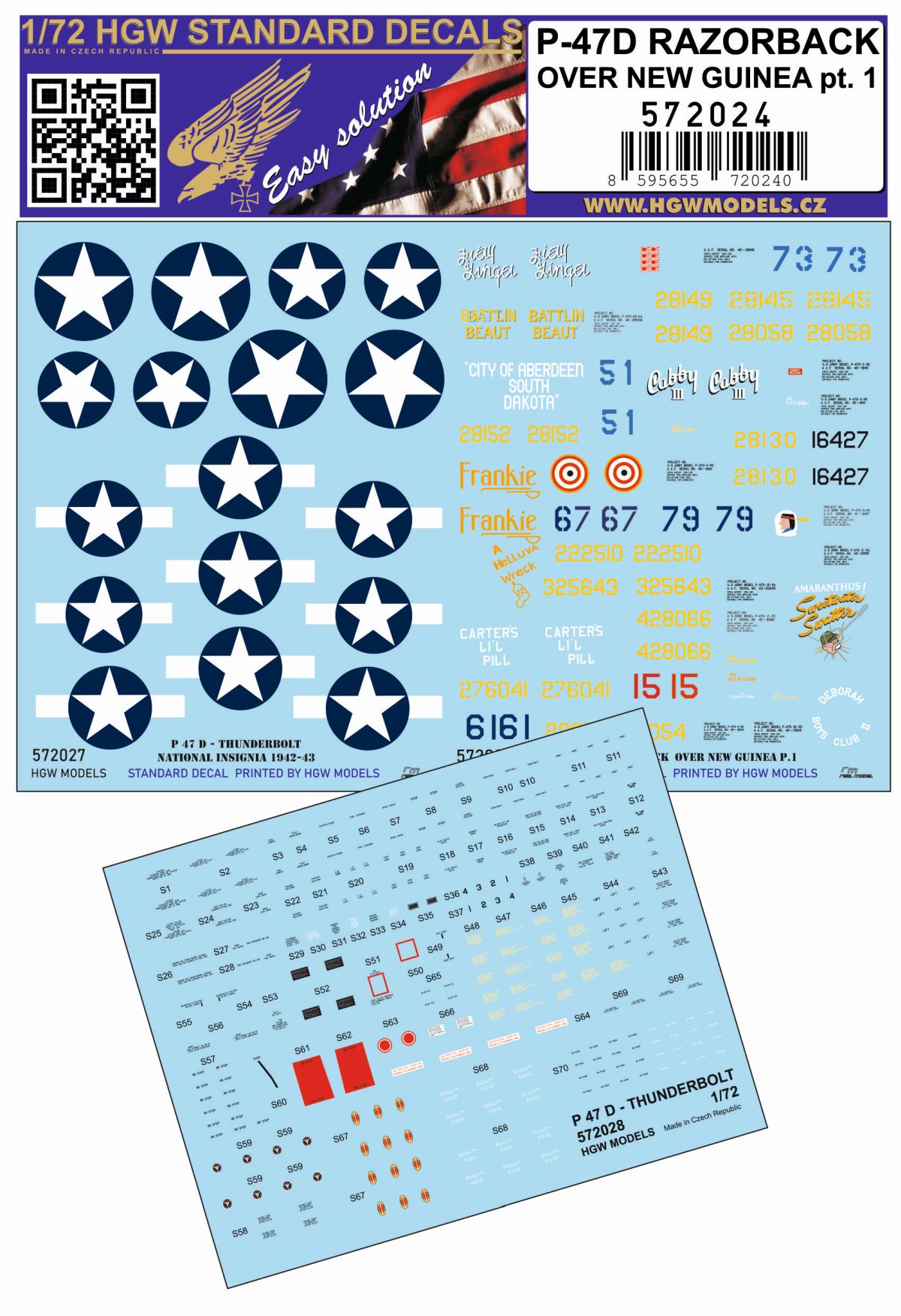HGW - 1/72 Republic P-47D Thunderbolt Razorback Over New Guinea part 1 Standard Decals