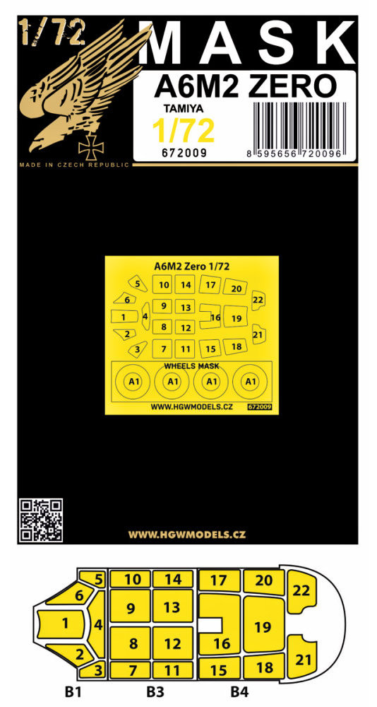 HGW - 1/72 Mitsubishi A6M2 Zero for Tamiya kits HGW's masking patterns, for clear parts and wheels.