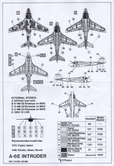 Hi Decal - 1/48 Grumman A-6E 'TRAM' Intruder (3) 161667 AJ/633 VA-36, USN, Uss Theodore Roosevelt Operation 'Desert Storm', 1991, tan and sand scheme, 157010 AB/500 VA-85, USN, Uss America Operation 'Deny Flight', 1993, 161681 EA/500 VNA(AW)-332, USMC, Mcas Cherry Point, 1993