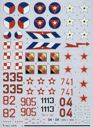 HI Decal - 1/48 Mikoyan MiG-19PM Farmer E (6) Red 04 16th Air Army Soviet Air Force 1959, Black 1113 Czech Air Force 1965, Red 335 3rd Fighter Regt. East German Air Force, Red 741 66th Fighter Regt Romanian Air Force 1965, Red 905 28th Fighter Regt Polish Air Force, Red 82 Cuban Air Force 1962