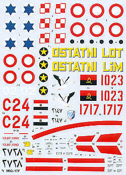 HI Decal - 1/72 Mikoyan MiG-17F/LIM-5 Fresco C. (6) Poland, Red 17 45th Experimental AS 'Last Flight-Last LiM' 12/7/93, Red 1023 61st Training AR, Egypt Ramadan War 1973, 1981, Israeli White 02 ex Syrian 1041, Angola Red C24 1980,