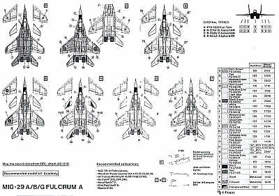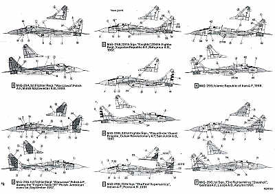 HI Decal - 1/72 Mikoyan MiG-29A/BG Fulcrum A (7) Poland (2) Red 66 1st Fighter Regt 1999, Red 89 Eagles Talon '97, Yugoslavia 127 Sqn 1997, Cuba 231 Fighter Sqn 1997, India KBoeing 720 28Sqn, Iran 3-6115 1998,Luftwaffe 29+06 1st Sqn 1997