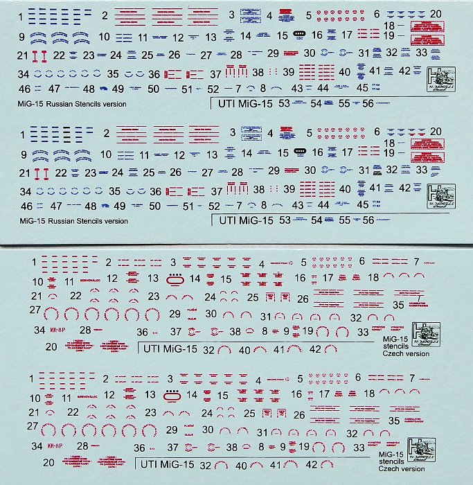 HM DECALS - 1/48 Decals & Stencils MiG-15/MiG-15 UTI (CZ,RU)