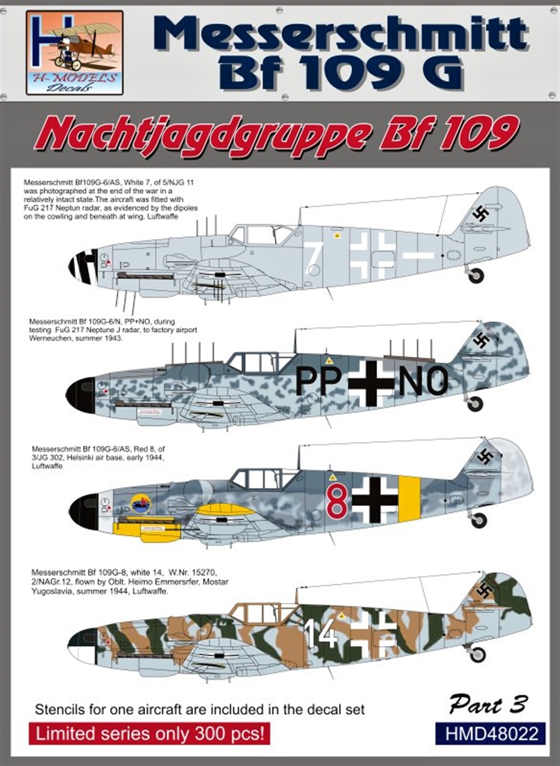 HM DECALS - 1/48 Decals Bf 109G Nachtjagdgrupe - Part 3