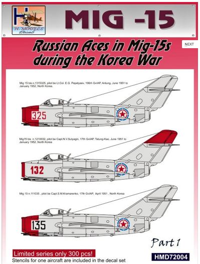 HM Decals - 1/72 Decals MiG-15 Russian Aces in Korea War Pt.1