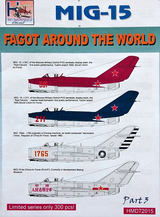 HM DECALS - 1/72 Decals MiG-15 Fagot around the world - Part 3