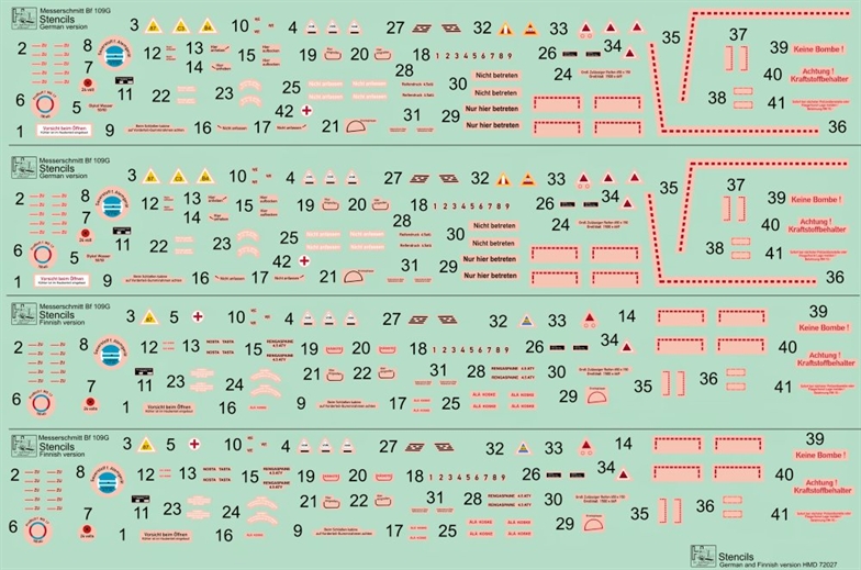HM DECALS - 1/72 Stencils Bf 109G (German&Finnish versions)