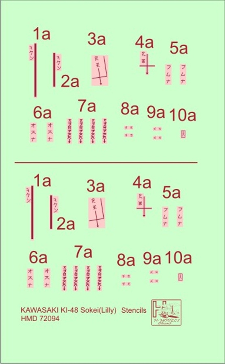 H-Model Decals - 1/72 Kawasaki Ki-48-II Lily stencils (set for 2 a/c)