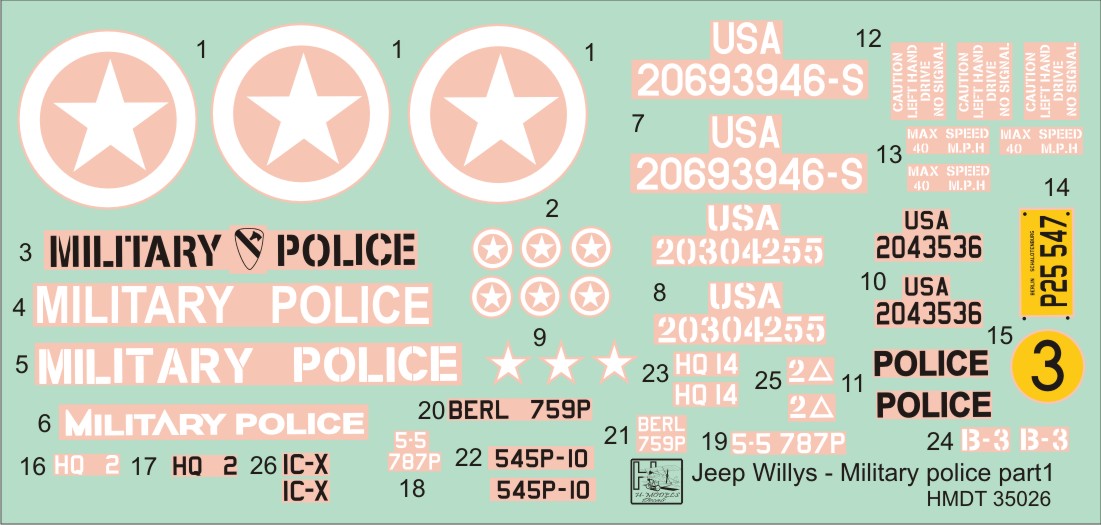 HM DECALS - 1/35 Decals J.Willys MB/Ford GPW Military Police 1