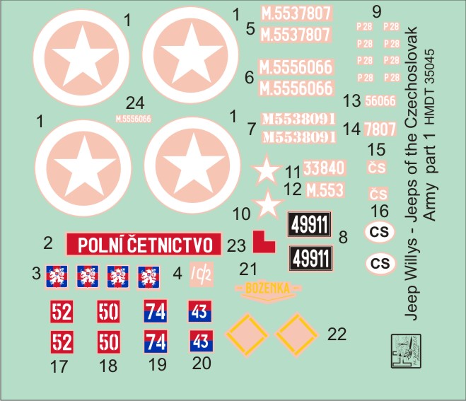 HM DECALS - 1/35 Decals J.Willys MB/Ford GPW CZ Army Brigade