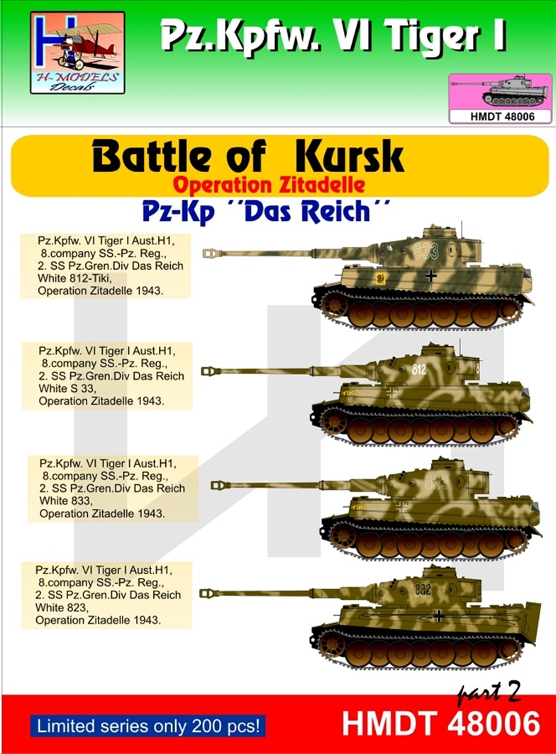 H-Model Decals - 1/48 Pz.Kpfw.VI Ausf.H1 Tiger I Battle of Kursk (Pz.Kp. Das Reich), Pt.2