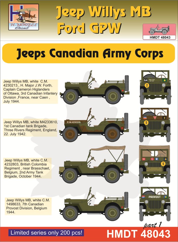 HM DECALS - 1/48 Decals Jeep Willys MB/Ford GPW Canadian Army Corps 1