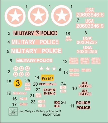 HM DECALS - 1/72 Decals Jeep Willys MB/Ford GPW Military Police 1