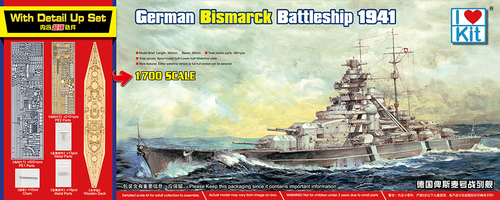 I LOVE KIT - 1/700 German Bismarck Battleship (Ex Trumpeter kit but with wooden decks and photo-etch)