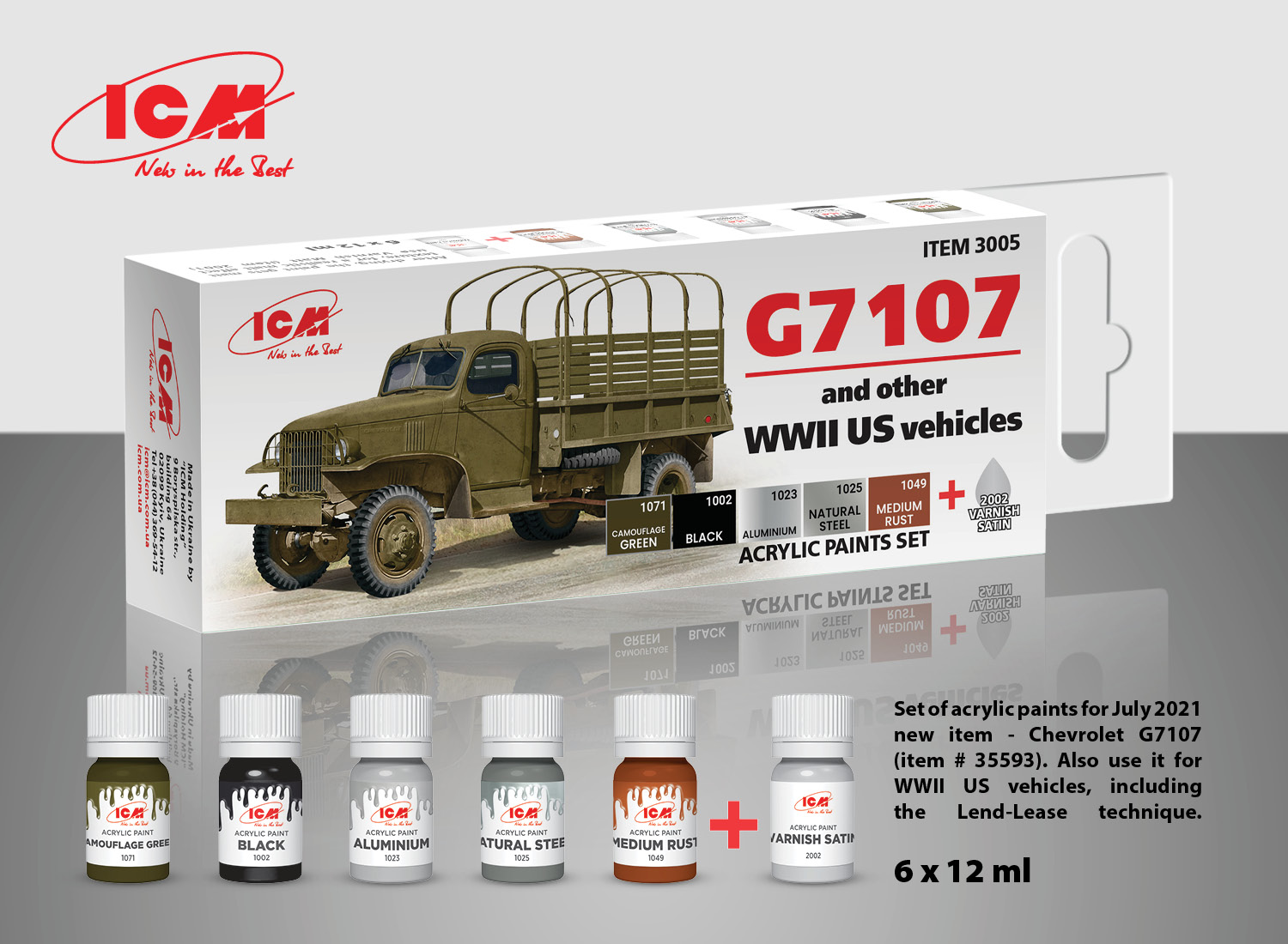 ICM - Acrylic Paint Set for G7107 4x4 WWII Army Truck (and other WWII US vehicles (for Icm and Mini Art kits