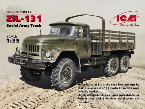 ICM - 1/35 Soviet Zil-131 Soviet Army Truck. First model kit of this famous Soviet power all-drive Army Truck 1/35 scale ever been produced. New extension version of instruction sheet is included.