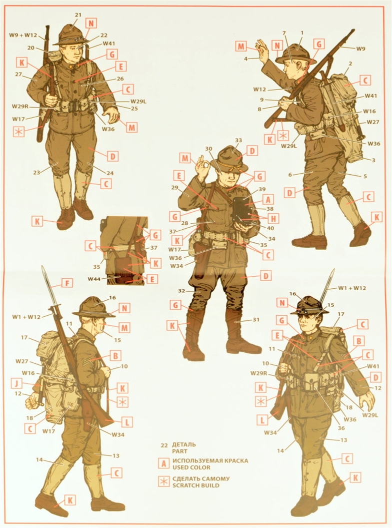 ICM - 1/35 US Infantry (1917) (4 figures) US Infantry (1917) (4 figures). - The set includes a figure of the Officer and three figures of US infantrymen of 1917 period - Correct details of uniform - WWI US infantry weapons and equipment set is included