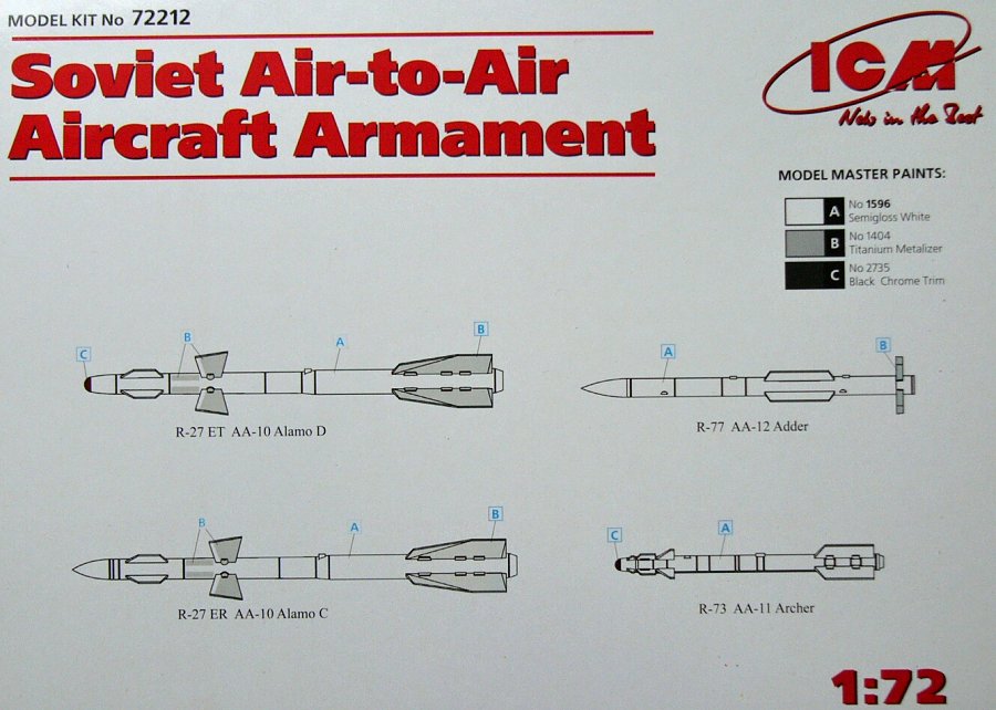 ICM - 1/72 Soviet Air-to-Air aircraft armament.. R-27 Et AA-10 Alamo D, R-77 AA-12 Adder, R-27 Er AA-10 Alamo and R-73 AA-11 Archer
