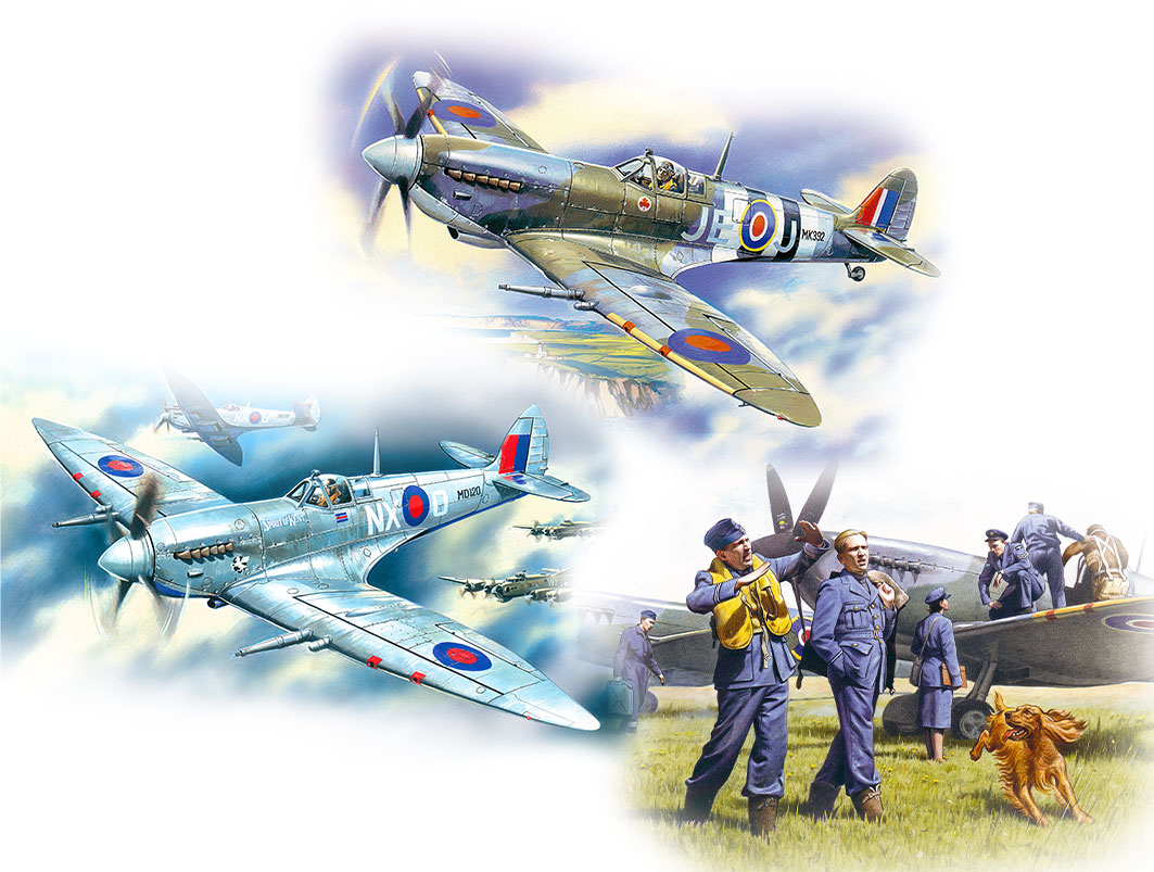 ICM - 1/48 WWII Raf Airfield (Supermarine Spitfire Mk.IX, Spitfire Mk.VII, Raf Pilots and Ground Personnel (7 figures) Diorama Set