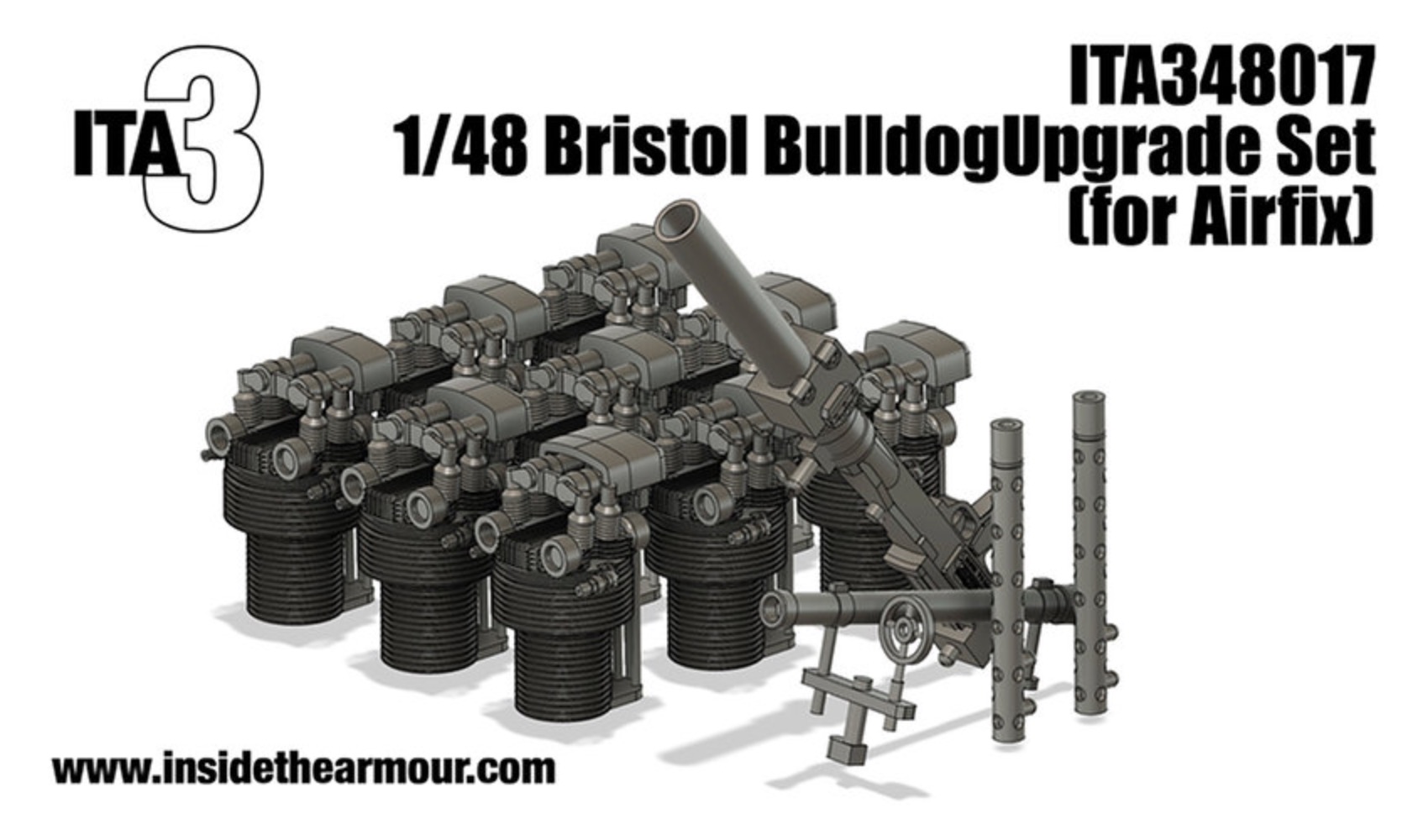 A set to improve the key exterior details of the gorgeous new Airfix 1/48 Bristol Bulldog. Includes a new gun camera, new Mg barrels, new, highly-refined gun sights, and engine cylinders with improved details and no seam to fill through the cooling vanes!