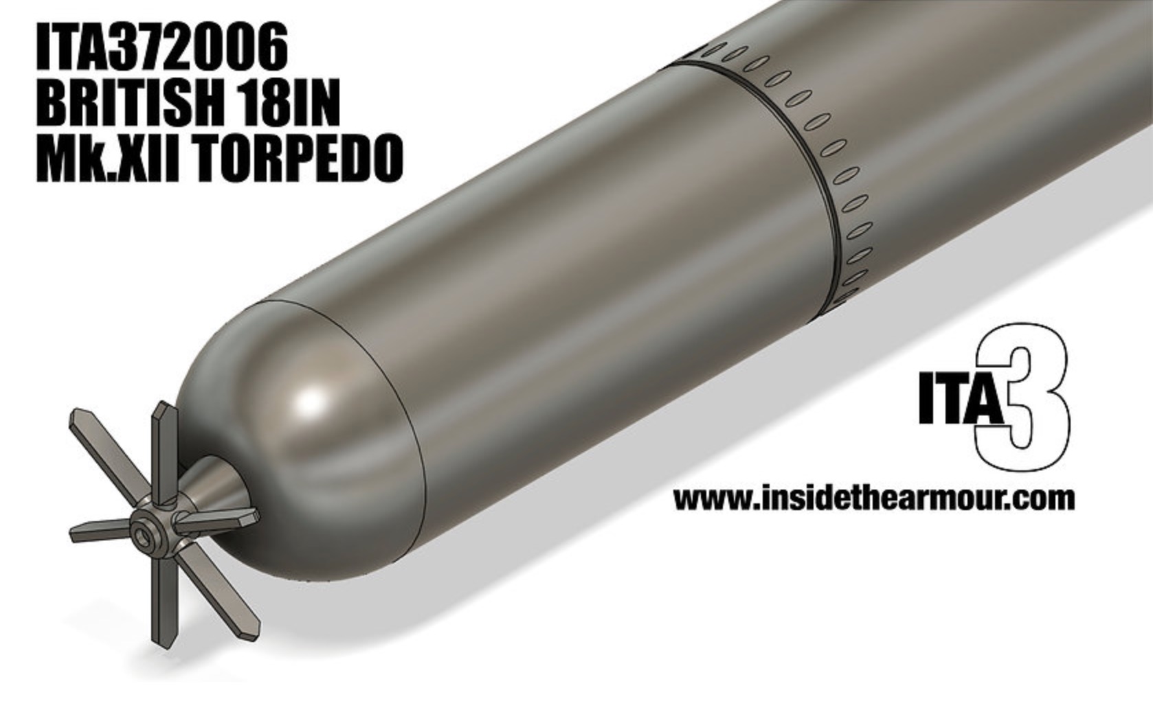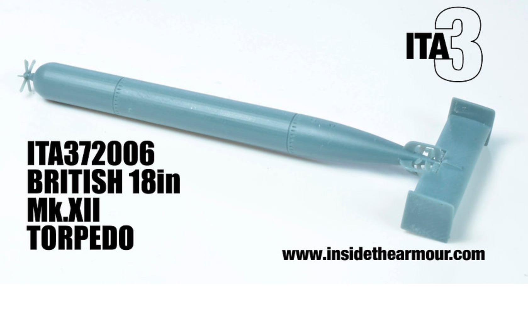 Inside the Armour - 1/72 British MkXII 18 in Torpedo. 1 very highly detailed torpedo with optional wing, for Bristol Beaufort, Fairey Swordfish or other torpedo bombers