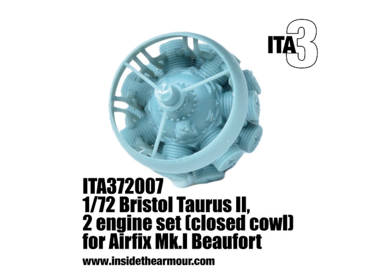 Inside the Armour - 1/72 Taurus II Engines set of 2 closed cowl version for Airfix a set of two 1/72 handed Bristol Taurus II engines for the Airfix Bristol Beaufort. Note this version is suitable only for closed cowls.