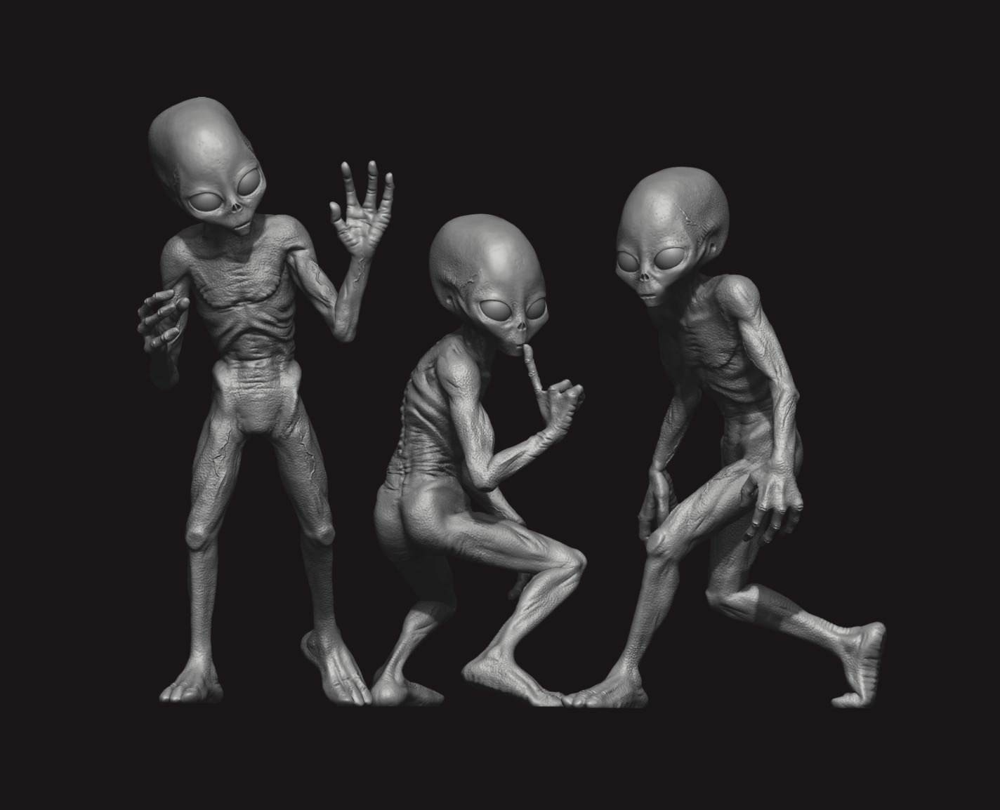 3D-printed Grey Alien figures, expertly crafted in dynamic poses and precise detail. These captivating extraterrestrial beings are perfectly rendered in 1/35 scale, making them a fantastic addition to any diorama, base for sci-fi diorama or single figure masterpiece. Our figures are printed using a modeller-friendly slightly flexible resin that ensures optimal quality and is easy to work with typical modellers tools.