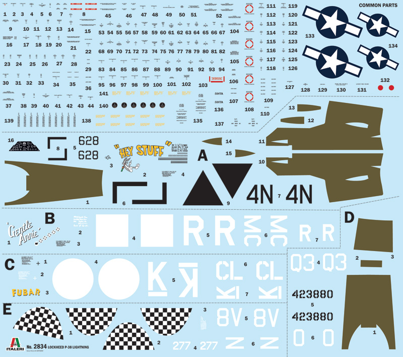 Italeri - 1/48 Lockheed P-38J Lightning E.T.O Super Decals Sheet For 5 Versions Color Instruction SHEET